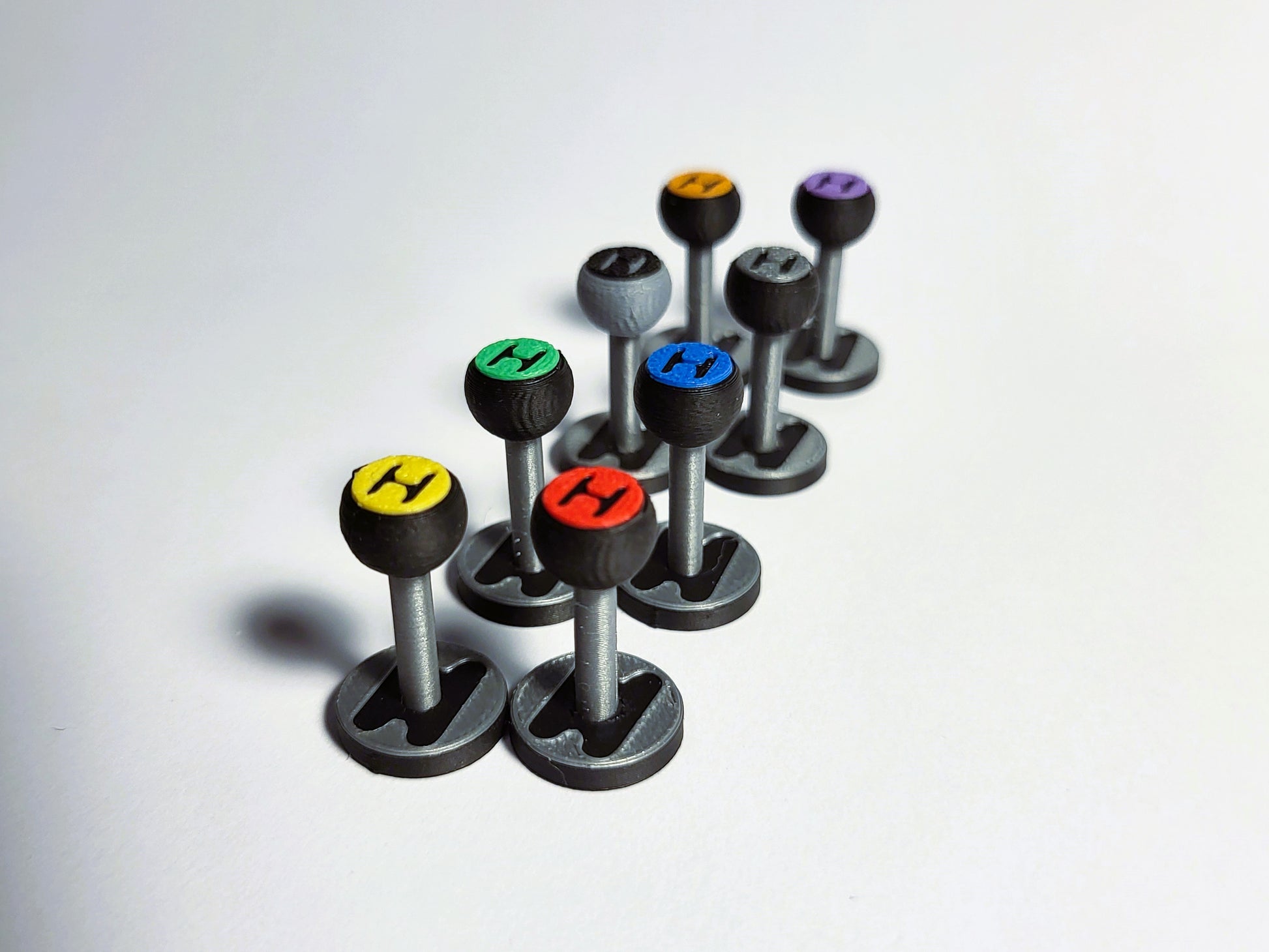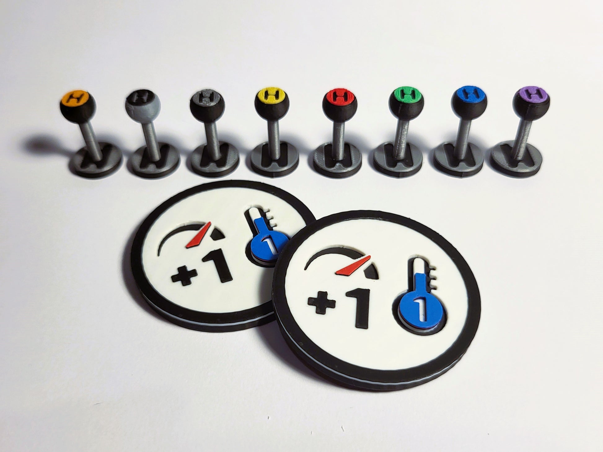 Enhance your gameplay experience with this set of 8 detailed transmission levers, designed specifically for the board game HEAT: Pedal to the Metal. These custom transmission levers bring a tactile and thematic touch to your racing strategy, making every gear shift feel more immersive and exciting!
